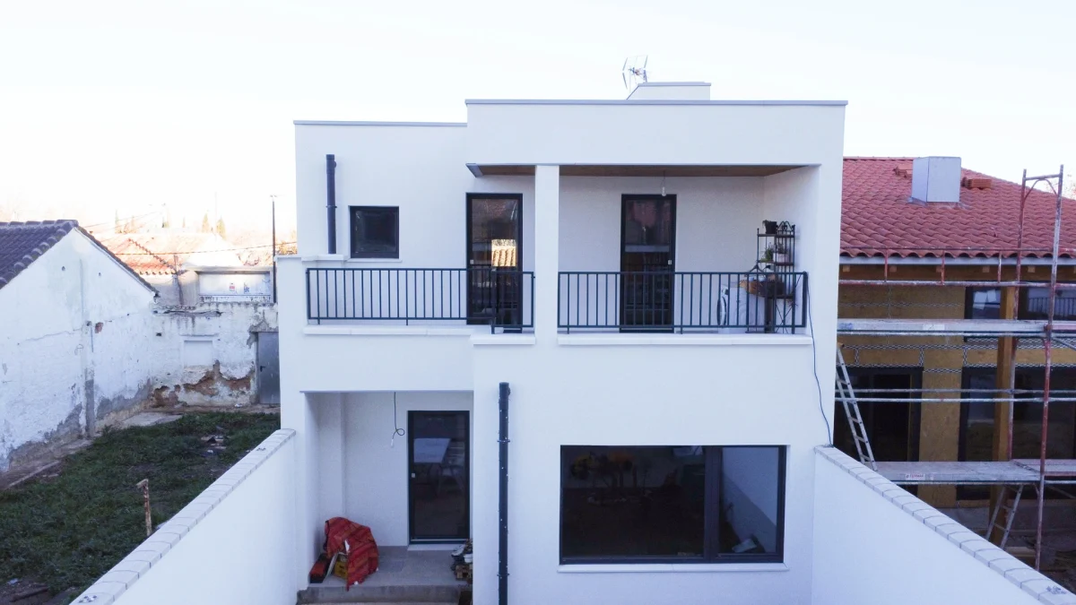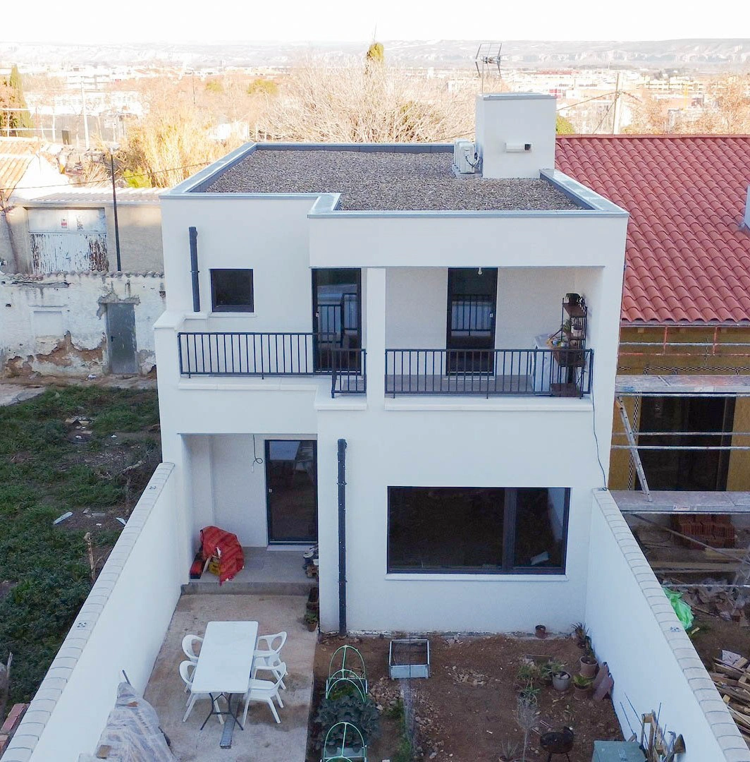 Vivienda unifamiliar construida bajo el estándar Passivhaus, ubicada en Zaragoza ciudad, en el casco urbano. La vivienda al estar construida entre medianeras, las paredes colindantes están levantadas con termoarcilla y el resto de estructura portante muros, forjados y cubierta está realizado en entramado ligero. La vivienda se desarrolla en planta baja y en planta primera. Es de línea contemporánea y se ha proyectado para que en planta baja se desarrolle la actividad diurna, con una balconera con acceso a patio/jardín trasero, también dispone de garaje en la planta baja, quedando éste fuera de la envolvente pasiva.