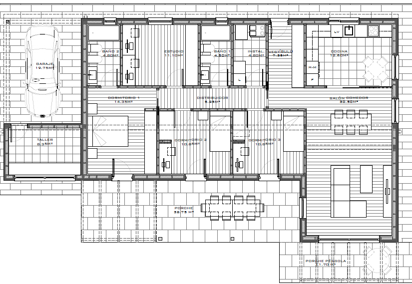 Vivienda unifamiliar construida bajo el estándar Passivhaus, ubicada en Garrapinillos (Zaragoza) . La vivienda se desarrolla únicamente en planta baja y construcciones anexas destinadas a garaje, taller y porches cubiertos. La zona de actividad diurna se concentra principalmente al Sureste disponiendo de amplias balconeras que dan acceso al porche y a la zona ajardinada. A la vivienda se adosan pérgolas en la fachada, un garaje cubierto y un anexo destinado a taller.