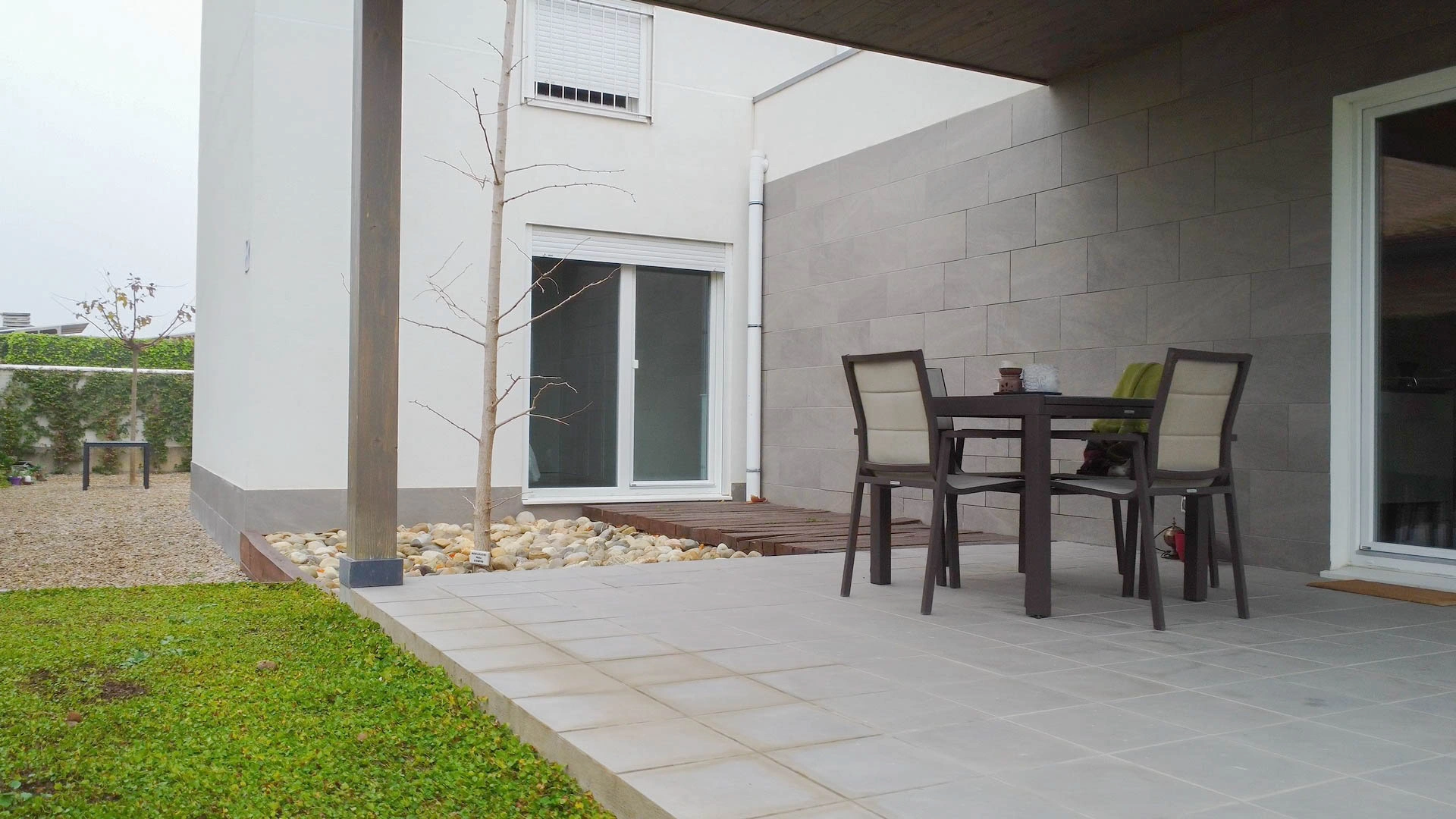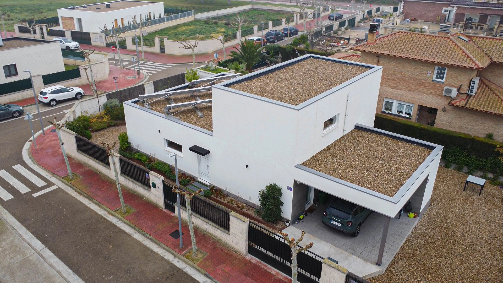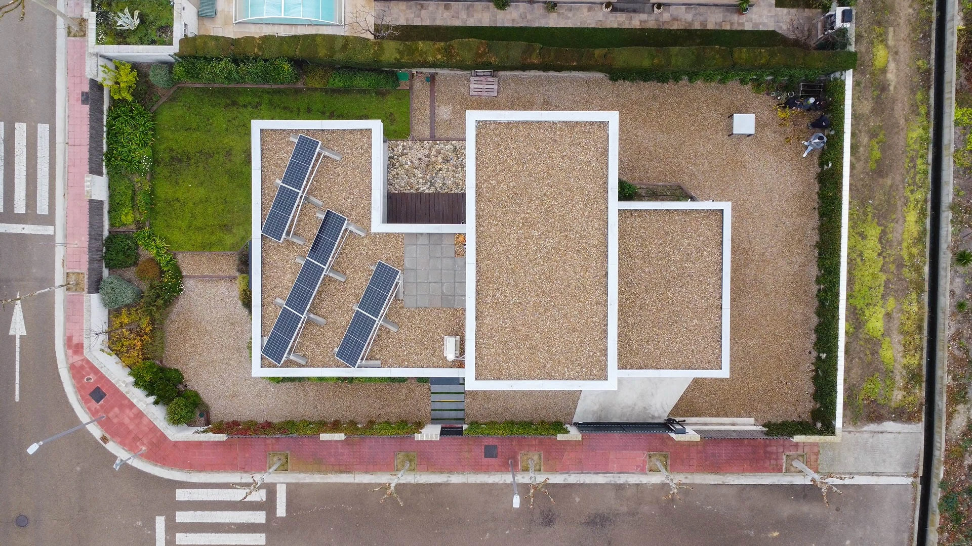 Vivienda unifamiliar construida bajo el estándar Passivhaus y Certificada, ubicada en Utebo (Zaragoza) localidad próxima a Zaragoza ciudad. Se trata de una vivienda de planta baja y planta primera, de líneas contemporáneas que forman diferentes volúmenes y cubierta plana con acabado superficial en grava. La zona de actividad diurna se desarrolla en planta baja con una grande balconera que da acceso al porche y jardín. A la edificación se adosa un taller y un garaje cubierto todo ello fuera de la envolvente pasiva. En su exterior, la fachada está con un revestimiento continuo de SATE y aplacados cerámicos. La estructura portante, de forjado y cubierta está realizado en entramado ligero, dejando ver poste y viga de madera laminada en el salón-comedor-cocina. La vivienda consta de una superficie cerrada de 166,55m2c y una superficie abierta de porche y garaje de 44,35m2c.